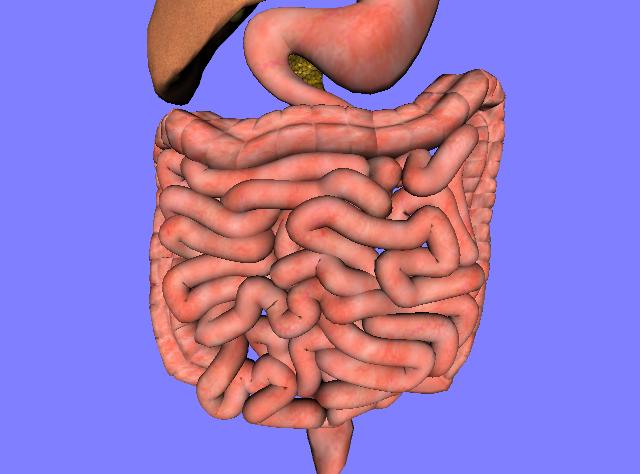 Now, the small intestine is about 22 feet long with lots of twists and turns and folds. I grabbed some images to explain: