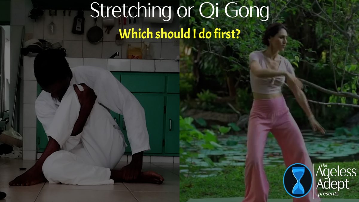 Would it generally be better to do my QiGong exercises before or after my “runner’s stretching” (calves, quads, lumbar, glutes)?
