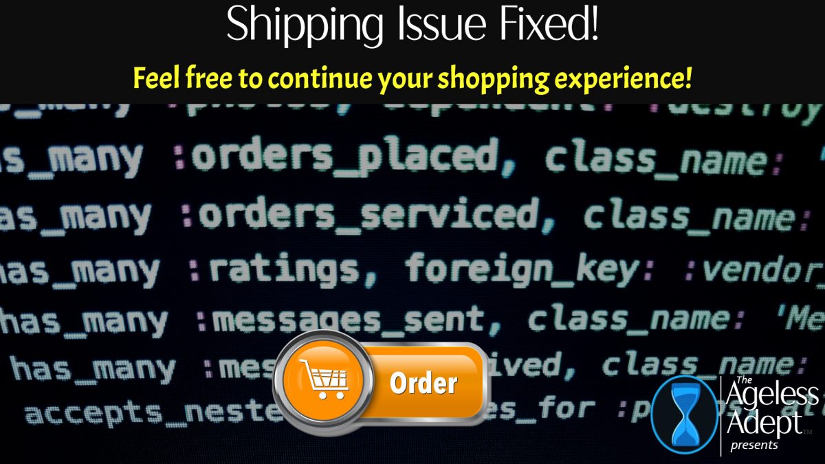 If you’ve attempted to order the downloadable ebook edition of any of the Ageless Adept resources and experience a shipping charge added to your order, that issue was brought to my attention and I’ve fixed it.