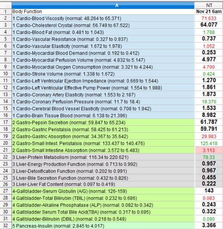 My (Partial) Magnetic Resonance Analysis Device Readings at 6:00am: